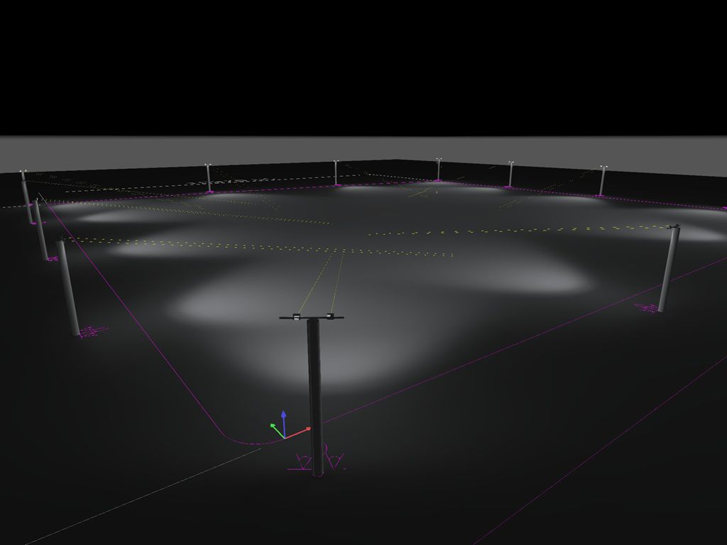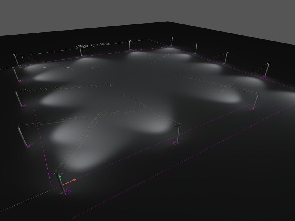 協助設計單位透過Dailux軟體確認使用燈具數量及燈桿高度能否達到設計需求